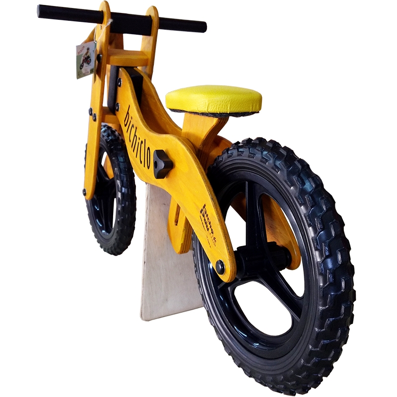 Construído em compensado naval 10mm. Todos os cantos arredondados, parafusos com pontas cobertas e porcas autotravantes (para minimizar riscos). Não possui pedal e nem rodinhas laterais. Rodas: Plásticos e EVA aro 12. Montagem realizada somente por adulto. Não utilizar sem supervição de um adulto.